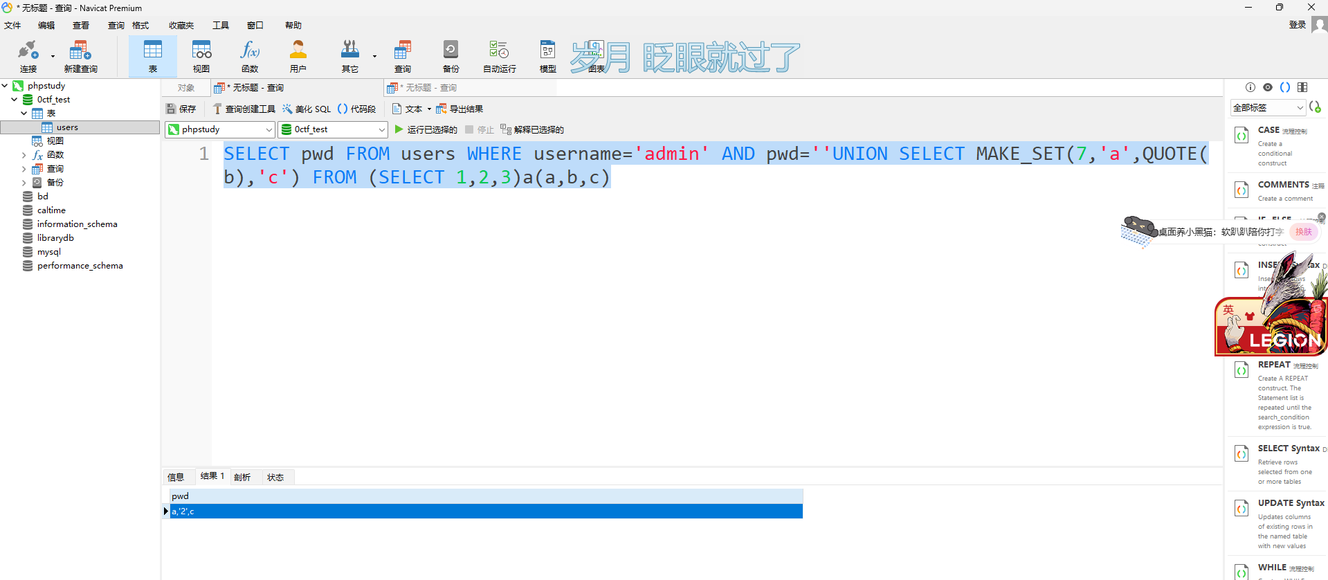 要构造查询出来的pwd和你传入的pwd一样的字符串进行比较得到flag,这里也是看了wp学了一下大概需要什么函数,然后自己写写试试