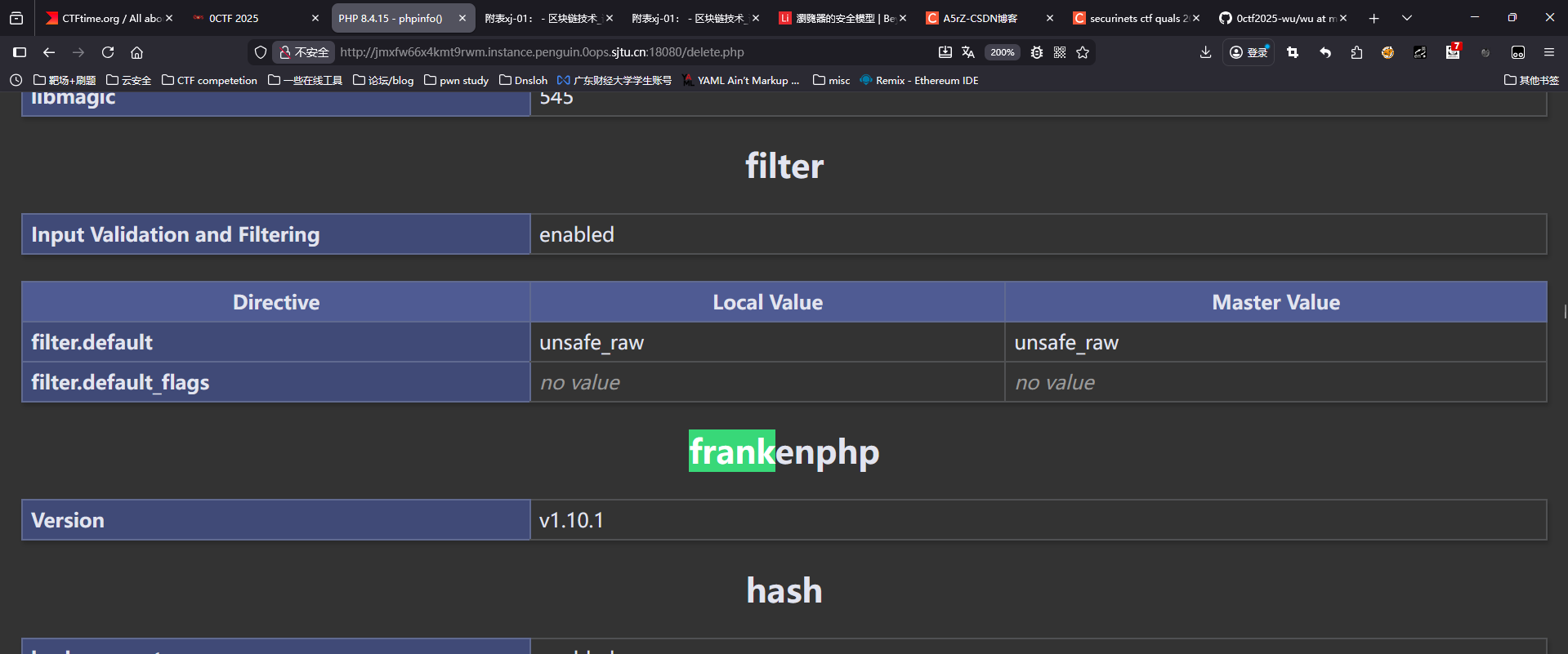 刚开始这个题我大概方向对了,从phpinfo看到了FrankenPHP,想着应该是FrankenPHP在处理文件上存在问题,但是后面没去看了,因为家里有点事出门了 Source: